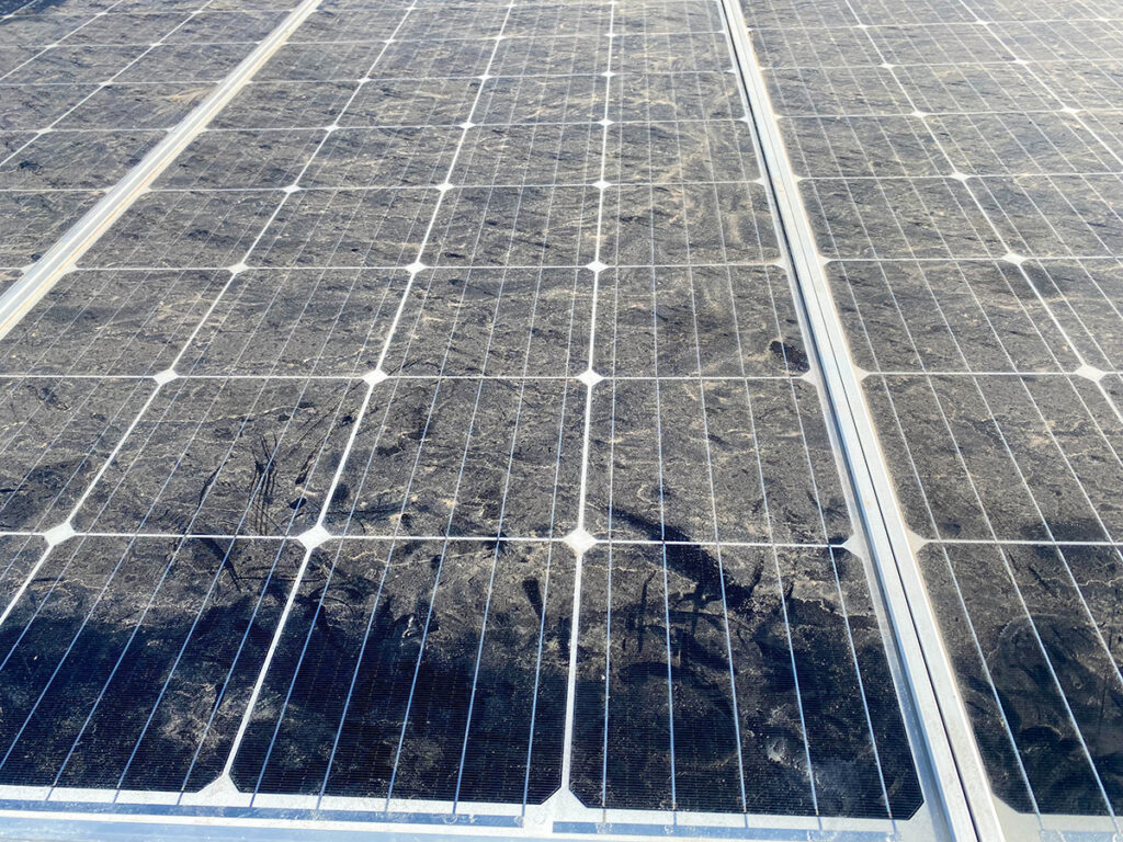 Fientes d’oiseaux et dépôts organiques corrodent durablement la surface des modules.
